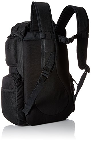 PU coated 1200D rip stop front and bottom for added protection. Side mesh pockets for your water bottle. Small media pocket with micro suede lining protects your technology from scratches and abrasions. Adjustable skate straps at front. Custom padded and reinforced back panel for added comfort. Padded shoulder straps. Nixon logo hit at front. Measurements: Bottom Width: 16 in Depth: 6 in Height: 18 in Strap Length: 40 in Strap Drop: 20 in Handle Length: 6 in