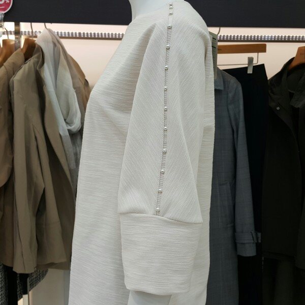 페미닌한 무드의 블라우스입니다독특한 소재의 심플한 실루엣에진주 장식을 숄더라인에 달아포인트를 준 디자인입니다다양한 아이템으로 연출해 보세요