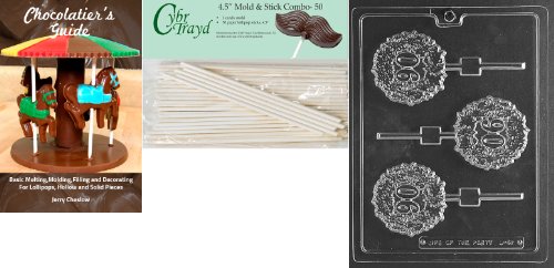 Cybrtrayd '90 Lolly' Letters and Numbers Chocolate Candy Mold with 50 4.5-Inch Lollipop Sticks and Chocolatier's Guide