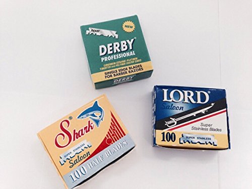 300 VARIETY RAZOR BLADES -- 100 PACK OF LORD, SHARK AND DERBY --BARBER SHAVETTE BLADES SINGLE BLADES