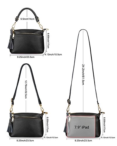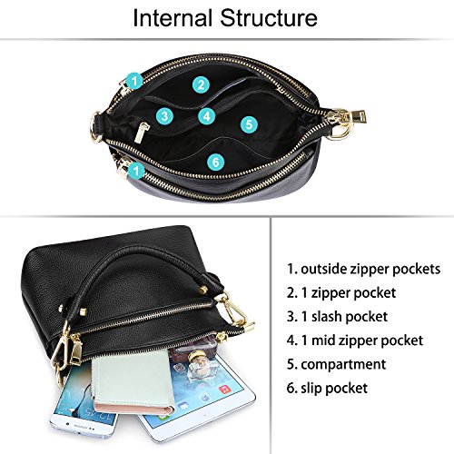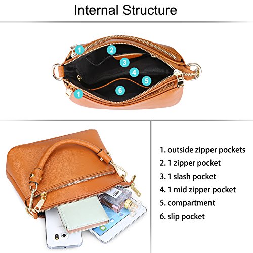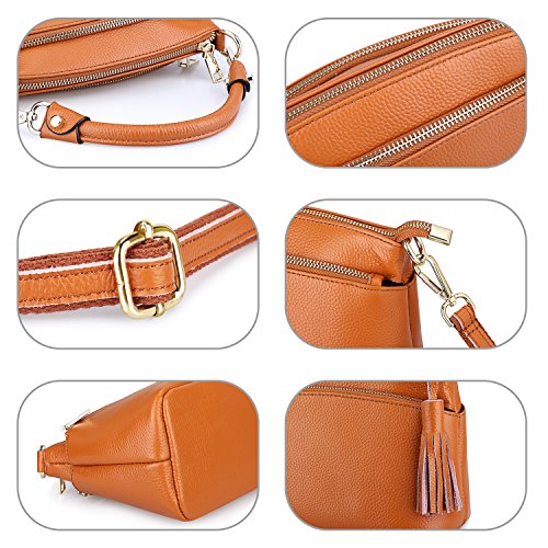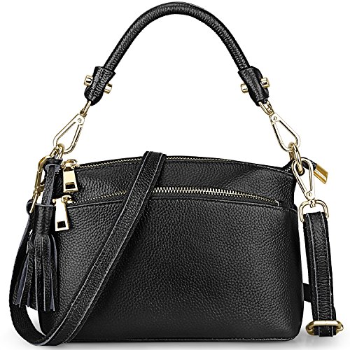 Product Description S-ZONE Women's Small Genuine Leather Multi Zipper Crossbody Bag Top-handle Handbag Shoulder Bag Satchel