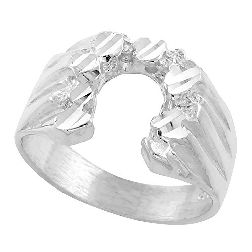 -. Title : Sterling Silver Horseshoe Ring Net Pattern Diamond Cut Finish 9/16 inch wide, sizes 8 - 13