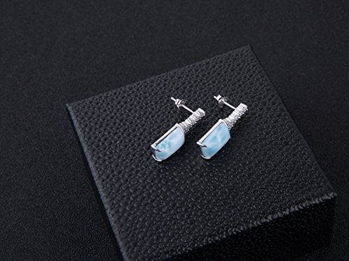 -. Title : Sterling Silver Jewelry Larimar Earrings Valentine's Day Gift Fashion Classic Blue Gemstone for Women