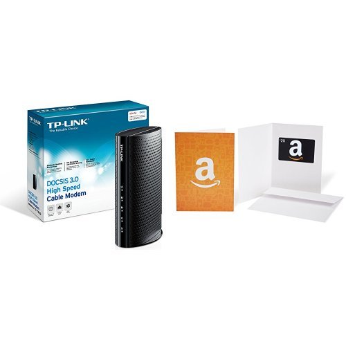 TP-Link DOCSIS 3.0 (16x4) High Speed Cable Modem Certified for Comcast XFINITY and Time Warner Cable (TC-7620) + $20 Amazon Gift Card Bundle