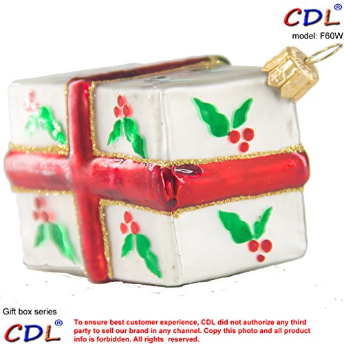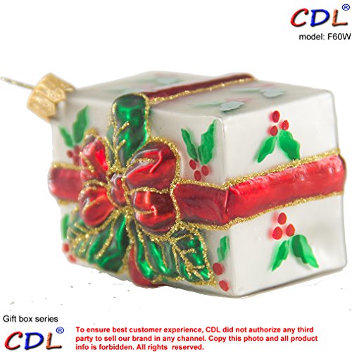CDL 4” Shinny White Rectangle Present/Gift Holy Leaves Box Red Band Bow Decor With Golden Lines Traditional/Glitter Christmas Tree Glass Ornaments Hand Painted Blown Glass Gift For Boy F60W