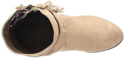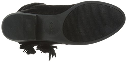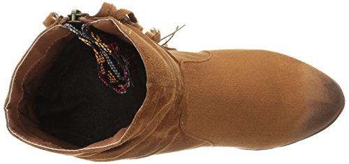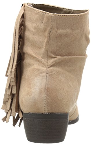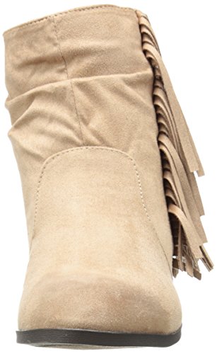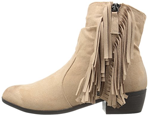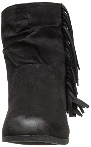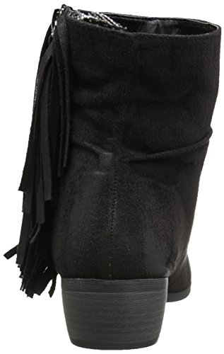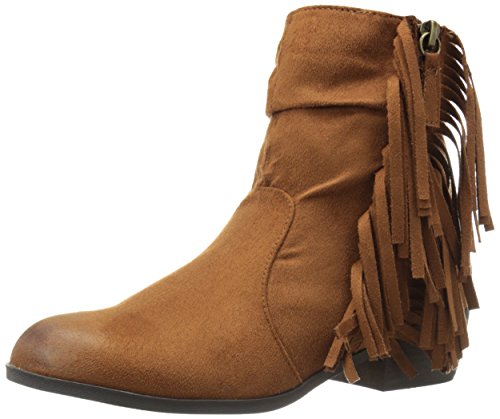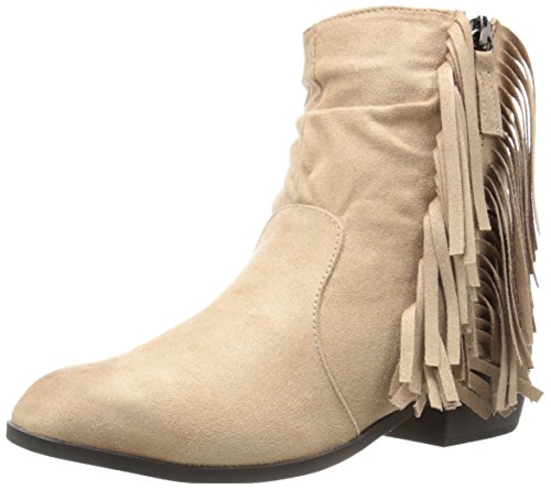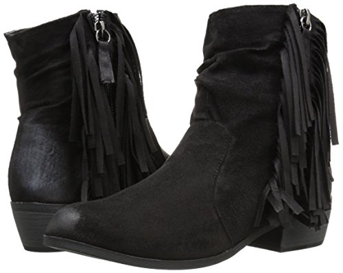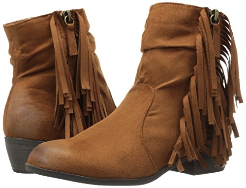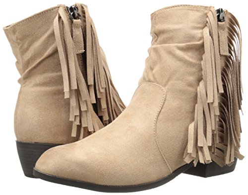Studio : Qupid Publisher : Qupid Binding : Apparel Product Description These fringe booties can be worn two ways. When zipped completely up, fringe detail hangs straight down. When worn zipper down, a contrast print can be exposed for some added color. Stacked heel and zipper are both burnished for an additional bohemian touch. 0