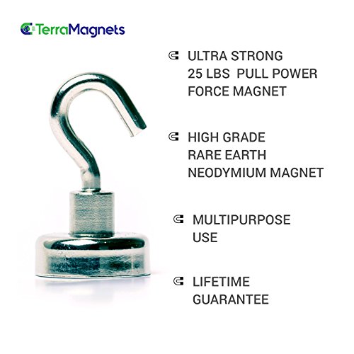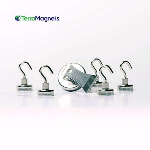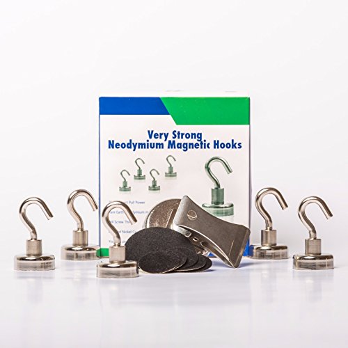 Neodymium Magnetic Hooks, 25lbs Heavy duty magnets, small,strong and powerful ,5 pack + 1 bonus magnetic clip and free protective stickers