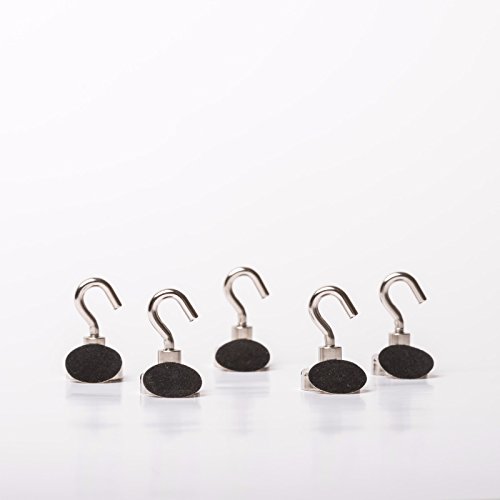 - ✔WHAT'S INCLUDED - Set of 5 Strong Neodymium magnetic hooks,6 x scratch free adhesive pads and 1 magnetic clip