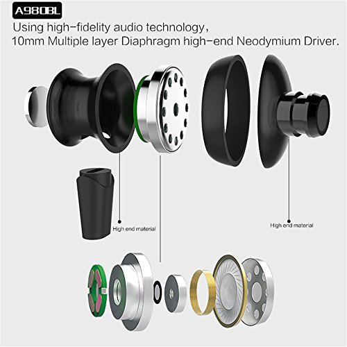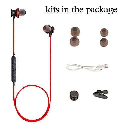 Studio : OLSUS Publisher : OLSUS Binding : Electronics Product Description Form Color: Red Material: Plastic Quantity: 1 set Connection: Bluetooth Bluetooth Version: Bluetooth V4.1 Bluetooth Chip: CSR4.1 Operating Range: 10m Connects Two Phones Simultaneously: Yes Headphone Style: Bilateral,In-Ear Waterproof Level: Others,Swearproof Applicable Products: Universal Headphone Features: English Voice Prompts,Phone Control,Long Time Standby,Magnetic Adsorption,Noise-Canceling,Volume Control,With Microphone,Lightweight,Portable,For Sports Exercise Support Memory Card: No Support Apt-X: Yes Channels: 5.1 Sensitivity: 110plus or minus 3dB Frequency Response: 20-20000Hz Impedance: 16 ohm Battery Type: Li-ion battery Built-in Battery Capacity : 55 mAh Standby Time: 200 hours Talk Time: 6 hours Music Play Time: 4 hours Power Adapter: USB Power Supply: DC 5V 300MA Packing List: 1 x A980BL Bluetooth headphone 4 x Sleeves 1 x Cable tie 1 x Cable clip 1 x Manual (English Chinese) 1 x Charging cable