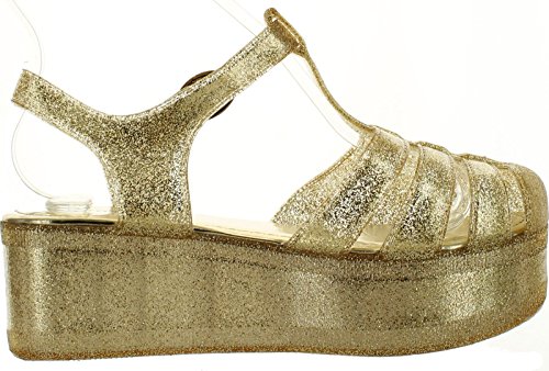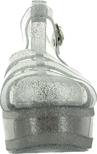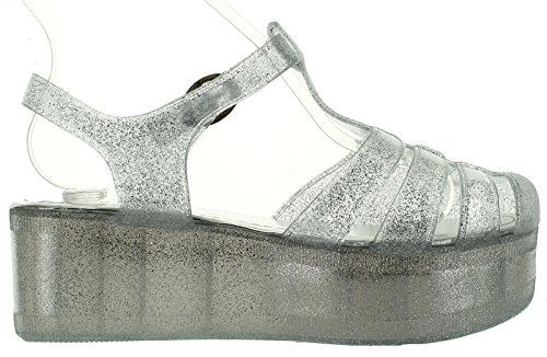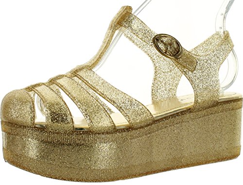 Bamboo Womens Klarissa-01 Glitter Flatform Jelly Shoes