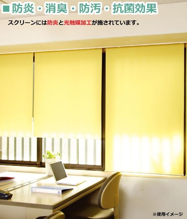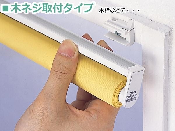 スリムロールスクリーンは従来品と比べると、1/2の大きさ(メーカー比)。コンパクトなので小窓や間仕切りにおすすめ!!窓枠が狭い場所や天井付けで奥行が狭い場所でもスッキリ収まります!!さらに防炎、消臭、防汚、抗菌効果もあります。 |