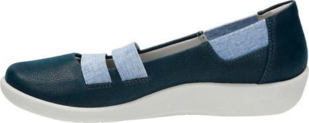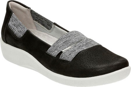 The Sillian Rest is a fun and feminine flat. Equal parts style and comfort, this women's slip-on shoe from the Clarks collection is modern, streamlined, and easy to wear. Soft fabric linings, ortholite® cushioned footbed, and super lightweight, shock-absorbing eva outsoles make it extremely comfortable for fitness walks, errands, or playing with the kids. The Sillian Rest is supremely lightweight and comfortable, making it a great travel shoe or everyday option.Feature