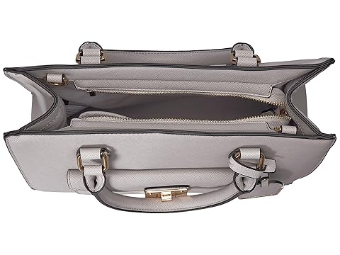 SKU: #8993737 You#x27;ll know your party is ready with the sharp Castana handbag. Made of synthetic leather. Zippered closure. Two rolled carrying handles. Removable and adjustable crossbody strap. Exterior features a zip pocket at the back and turn-lock pocket at front with polished hardware. Flat base with metal feet. Lined interior features a zip pocket and additional slip pockets. Imported. This product may have a manufacturer#x27;s warranty. Please visit the manufacturer#x27;s website or contact us at warranty@support.zappos.com for full manufacturer warranty details. Measurements: Bottom Width: 12 3?4 in Depth: 5 in Height: 11 1?4 in Strap Length: 45 in Strap Drop: 21 1?2 in Handle Length: 15 1?2 in Handle Drop: 5 3?4 in Weight: 1 lb 12 oz |