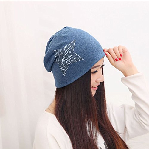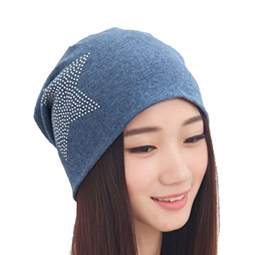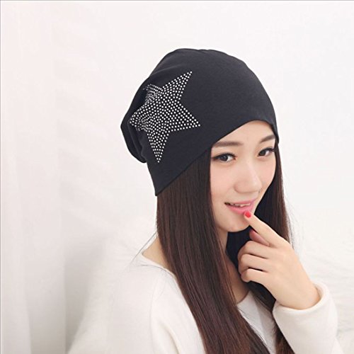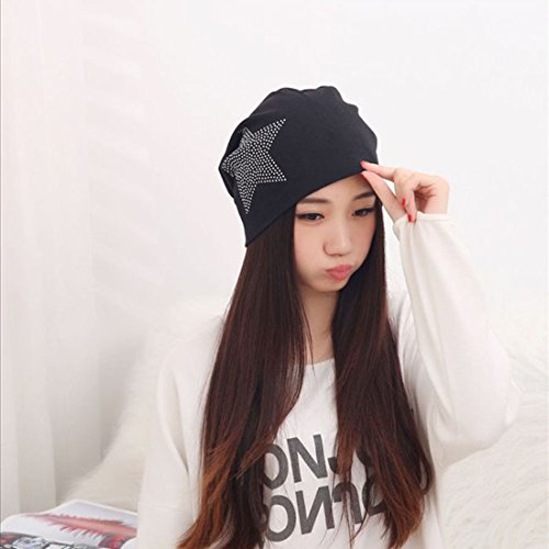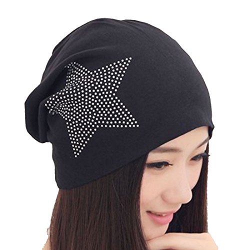 Women's Winter Warm Beanie Hip Hop Cotton Cap with Star Black