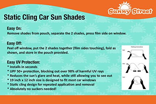 SunnyStreet SSS121 Car Window Easy Cling Sunshades, 19-Inch x 12-Inch, Pack of 2 B015PYC6A2