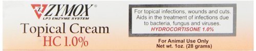 -. Binding : Misc. -. Brand : Pet King Brands -. EAN : 0634252079226 -. Feature : Provides a powerful natural enzyme formula to aid in the treatment of skin infections / May be lightly covered with a sterile bandage / Apply twice daily for one to two weeks or as directed by a veterinarian -. Label : Pet King Brands -. Manufacturer : Pet King Brands -. Model : 019ZYM01-1 -. MPN : 019ZYM01-1 -. NumberOfItems : 1 -. PackageQuantity : 1 -. PartNumber : 019ZYM01-1 -. ProductGroup : Pet Products -. ProductTypeName : PET_SUPPLIES -. Publisher : Pet King Brands -. Size : 1-Ounce -. Studio : Pet King Brands -. Title : Zymox Topical Pet Cream with Hydrocortisone, 1-Ounce -. UPC : 667334129052