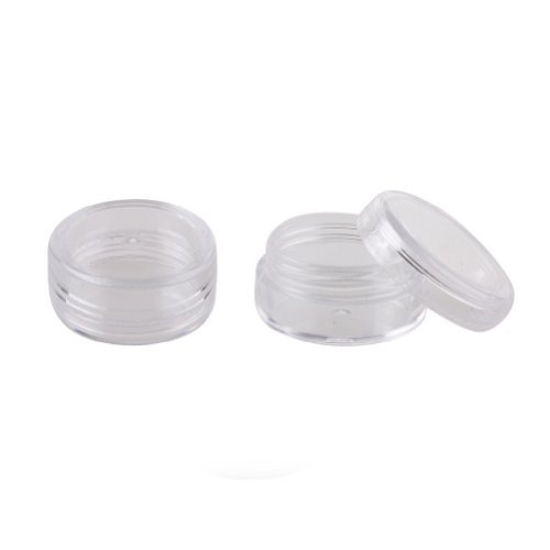 - Feature : Perfect for sampling mineralized eyeshadows, storing mineralized makeup, and easy to travel / 50- 5 gram empty clear plastic jars cosmetic jar containers pots / Jars for sampling of eyeshadows creams, lip balm lotions and cosmetics / Material: Polystyrene Diameter: 1 1/4" inch X Height: 3/4 inch / Easily screws together for compact storage of acrylic powder, liquids, nail designs and much more