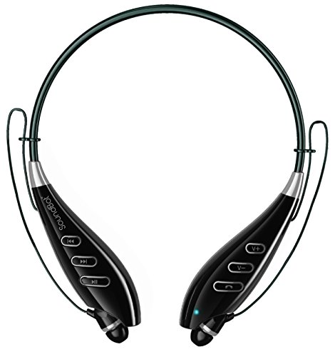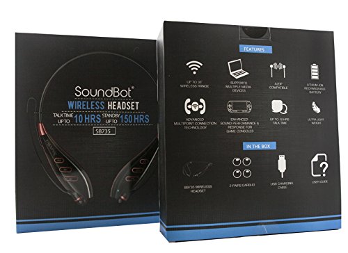 SoundBot® SB735 Around-the-Neck Bluetooth 4.0 Wireless Stereo Headset Sweat Resistant Wearable Headset w/ 10 Hrs Music Streaming or Hands-free Talking, Vibration Alert, 150 hours Standby Time, Multi-Point Connectivity, Hi-Fi Potent Bass, HD Crystal Clear Audio, Built-in Mic, Voice Prompt, & CVC (Clear Voice Capture)