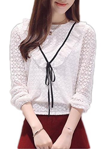 -. Title : (エンジェルムーン) AngelMoon レース カットソー 長袖 透け感 透かし編み リボン トップス レディース スポーツ デニム レテ゛ィース 大きめ サーファー ボーダー 大きいサイズ アンダーアーマー プリント セット ワンポイント (M, 白)