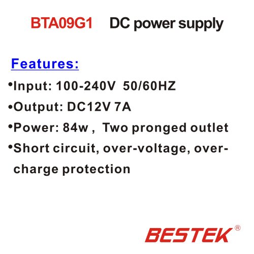 - Feature : 1. Input: 100-240v ~1.5A 50/60HZ; Output: DC12V 7A , One 7 amp 12 volt socket. Power: 84W. Allows high power 12V DC items to operate on 110v AC power. / 2. Protections: Short circuit, over voltage, over current. / 3. Works on portable cooler/warmers, air compressor and other DC appliances --- up to 84 watts max / 4. Steady and Reliable, Easy plug in use and vented for safety, US plug. Working temperature: 0~40 degrees Celsius / 5. Product Dimensions: 5.07" (Length) ×1.98" (Width) ×1.16" (Height) .