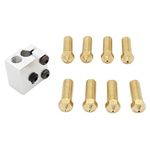 Wangdd22 High Speed V6 Print Pack for RepRap 3D Printer 1.75/3mm Filament Metal Hotend Volcano Extra Nozzles + Heater Block+NTC 3950 Thermistor