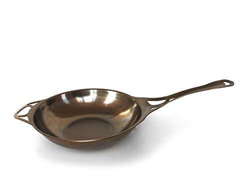 The 10.2" (26cm) Skillet With Smooth Finish by AUS-ION is 100% made in Sydney from one seamless piece of 3mm thick Australian sheet iron. A traditional fry pan for most jobs, with 2" high sides. AUS-ION cookware is built to last with all of the features and details professional chefs look for in a pan: high quality, comfortable to use and easy to clean. The seamless, one-piece construction means there are no rivets, so there is nothing for food or steel wool particles to get caught in. The handles are ergonomically designed with a wide, concave shape which is more comfortable to use with better control and less hand fatigue. And the generous venting in the handle neck reduces heat transfer for a cooler handle. The pans cook like cast iron but are lighter weight, they heat evenly and will not warp. The entire pan is naturally pre-seasoned for a healthy nonstick option; It is not coated like many steel pan brands, so it arrives ready to cook, no stripping necessary. AUS-ION pans are suitable for use at high heat over any heat source. For best results, follow our instructions. To clean: after cooking, use a wooden utensil or steel wool to gently scrape pan under hot running water. It is best to clean while the pan is still very warm. If necessary, you may use a brush, but be careful not to take off too much of that beautiful seasoning that you have built up! Do not use soap, as it will erode the seasoning. Dry thoroughly with a paper towel while the pan is still warm. If the pan is still relatively new, return to the stove top and wipe the interior of the pan with a small amount of oil, heat until smoking. Then, using tongs, wipe off the excess oil.Feature
