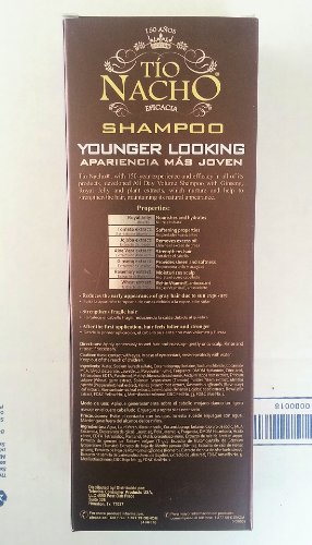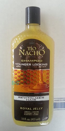 - Feature : Tio Nacho Shampoo Younger Looking.. 14 oz. / Royal Jelly Revitalizes Hair. / With Ginseng, Aloe Vera, Wheat Rosemary & Tomato. / Apariencia mas Joven. / Revitaliza El Cabello.