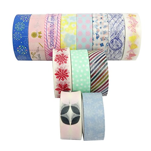 Molshine Set of 13 Decorative Japanese Washi Masking Adhesive Tape –Christmas Series - Collection, (Mixed Sizes) for DIY (WCL032C)