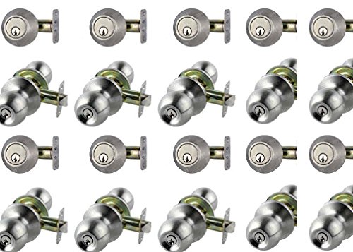 -. Title : 10 Sets of Keyed Same Door Knob and Single Cylinder Deadbolt, Satin Stainless Steel