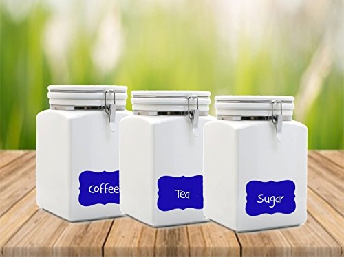 - BIG, strong adhesive fancy, rectangle vinyl chalkboard labels that you can DIY for your kitchen organization. Reusable and self-adhesive. Trim to size with household scissors. Sticks to any smooth surfaces.