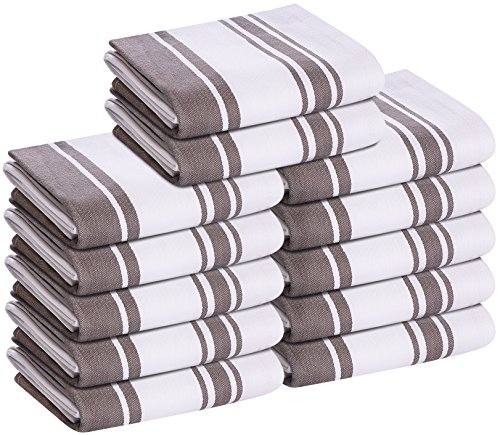 Top-Rated Kitchen, Restaurant, Hotel, Dish cloth Tea Towel Set! This 12-pack of 100% Cotton Kitchen, Restaurant, Hotel, Dishcloth Tea Towels (15 x 25 inches) is a popular and economical cleaning option for all purposes. They are absorbent and practical for dish drying or cleaning up messes in the kitchen. Professionally hemmed edges are carefully graded for quality control and product durability. An elegant stripe and herringbone weave ads appeal to the design, while its bleach safe fabric ensures longevity. Machine wash and dry. ? Durable material ? Perfect for drying dishes or cleaning spills ? Matching value-size set for quick kitchen makeover