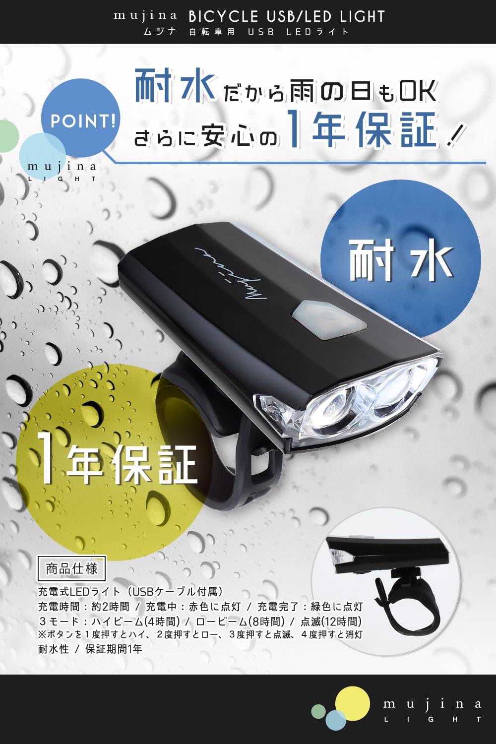【Easily removable water resistant light】
