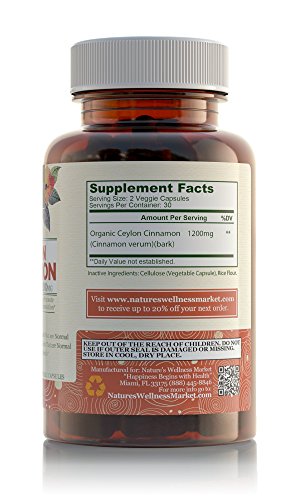 -. Title : Organic Ceylon Cinnamon Capsules by Nature's Wellness, 30-Count | 100% Organic Supplement, Powerful Antioxidant Supports Heart Health, Healthy Blood Glucose Levels, Joint Health + Joint Pain Relief