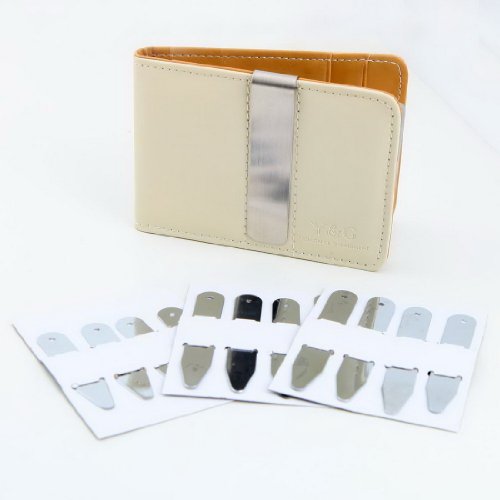 Set Including: Leather Money Clip Wallet, Stainless Steel Money Clip, 12 Collar Stays and Box