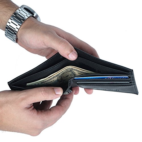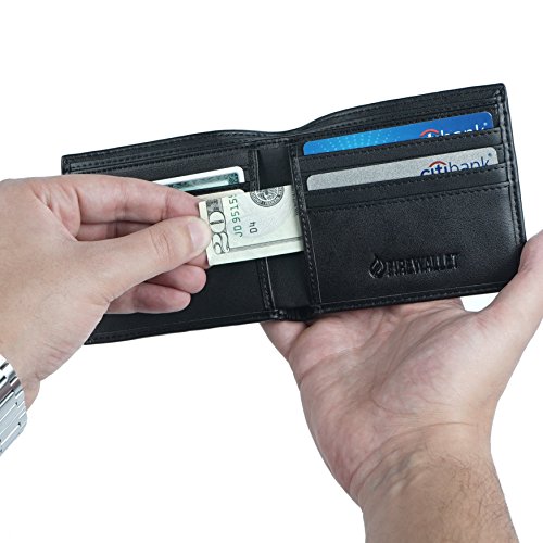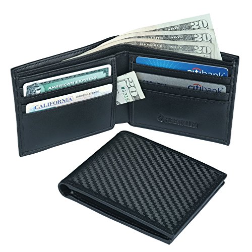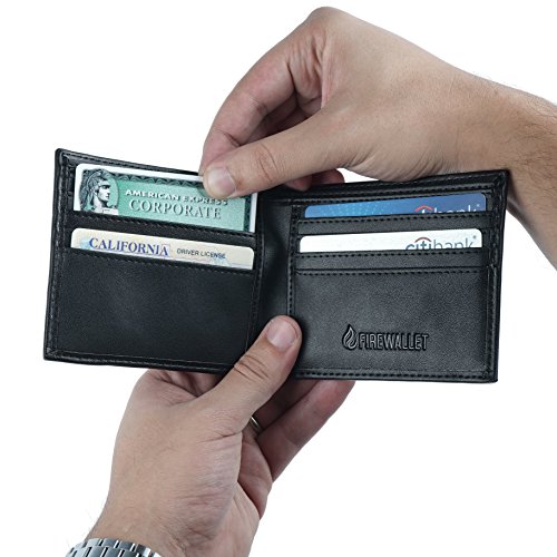 -. Binding : Apparel -. Brand : FIREWALLET -. Department : mens -. Feature : PROTECT YOUR RFID CARDS: Like a firewall protects your Mac or PC, the FIREWALLET protects your credit, debit, and ID cards from identity theft and electronic pickpocketing. / ADVANCED TECHNOLOGY: The FIREWALLET uses state of the art RFID blocking aluminum compound materials that prevent RFID, NFC and BLE card readers to steal your information. All card slots are protected from the outside AND inside. / ENJOY HIGH QUALITY and COMFORT: Every FIREWALLET is hand-crafted and made of high-quality genuine leather to ensure durability. Leather pressing technique creates the timeless carbon fiber look and makes the outside surface scratch resistant. The super slim design and smooth leather edges guarantee a pleasant wearing experience. / PERFECT FOR YOUR NEEDS: 8 credit card slots and 2 hidden slit pockets provide room for all your credit, gift and business cards. Also there are 2 long bill carriers to hold plenty of cash. Length: 4.4 ", Width: 3.6 ", Height: 0.4 " (empty) / 100% SATISFACTION GUARANTEED: We are sure that you will love your new FIREWALLET! Nevertheless if the FIREWALLET does not meet your needs, let us know within 30 days of purchase and we will provide a full refund or send you a new wallet. -. ProductGroup : Apparel -. ProductTypeName : ACCESSORY -. Title : Genuine Leather RFID Blocking Wallet for Men | Durable, Thin, Bifold, RFID Blocking Leather Wallet