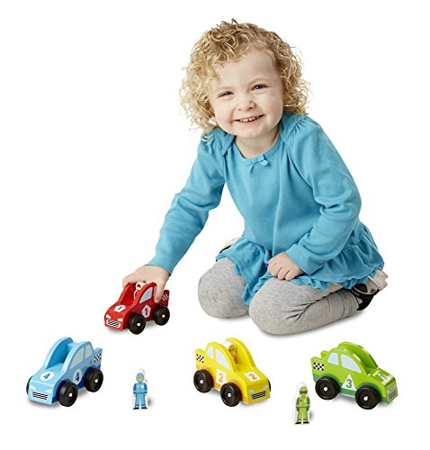 This collection of four wooden race cars quickly gets the good times rolling! Sturdy wooden construction and moving parts on each vehicle means the red, yellow, green, and blue cars will stand up to endless of hours of constructive play. Wooden race car driver play figures with images on both sides (front and back views) fit into each of the vehicles and can also be removed for additional imaginative play opportunities.Feature