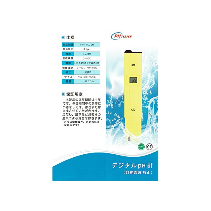 Silhouette 【일본어 취급 설명서 첨부】 디지탈 pH계 ATC 온도 보정 기능 첨부 페이하 미터 아쿠아리움 수조 수경 농업 의 수질검사 에! 케이스 교정 제부