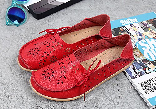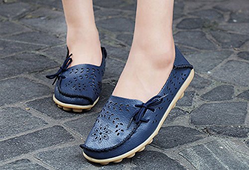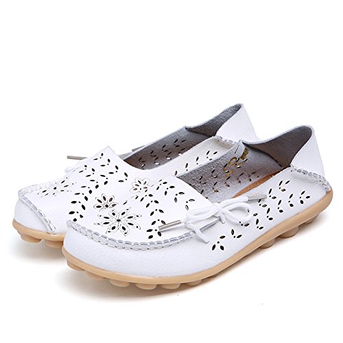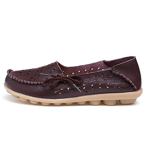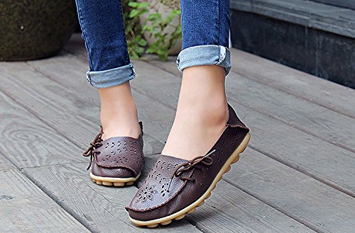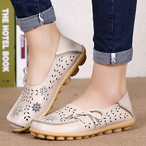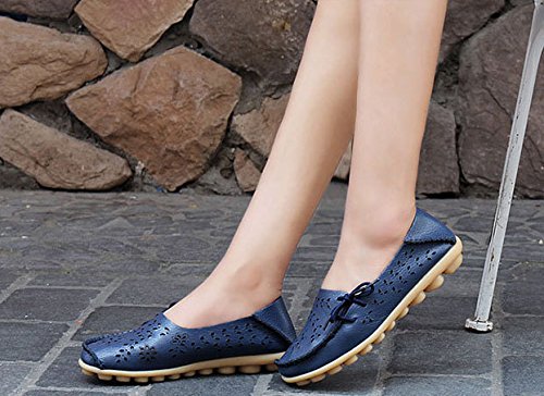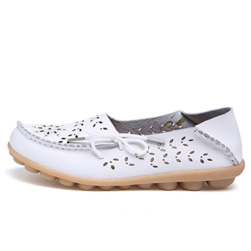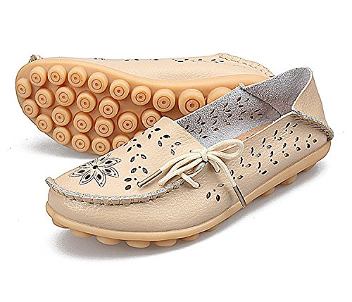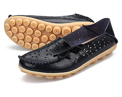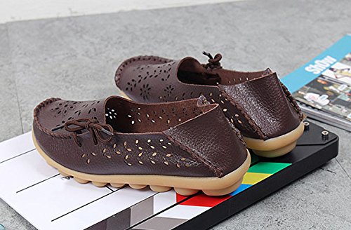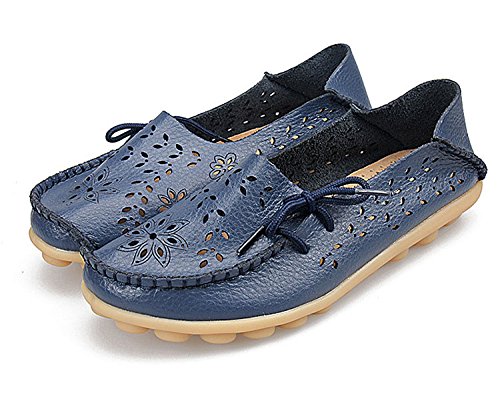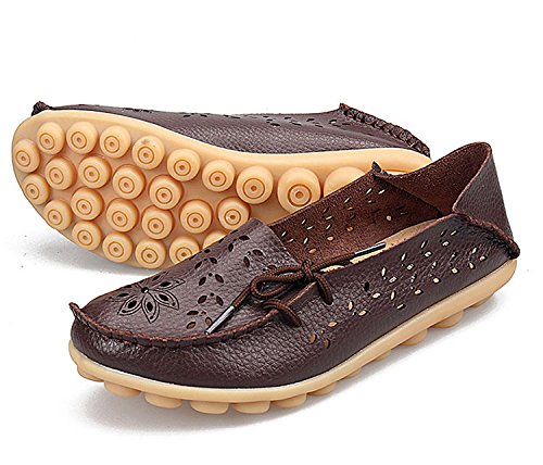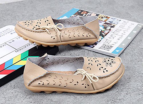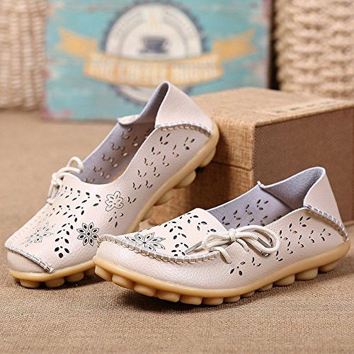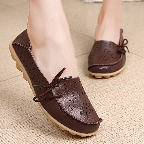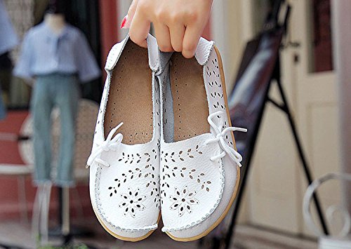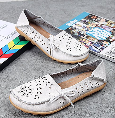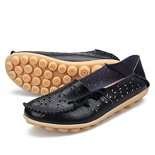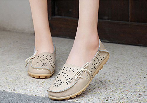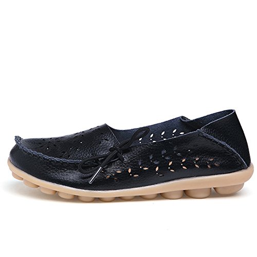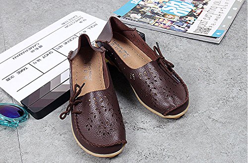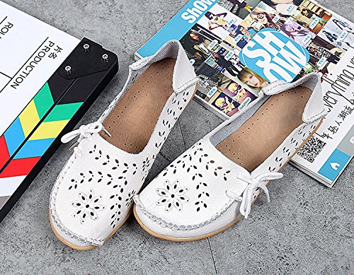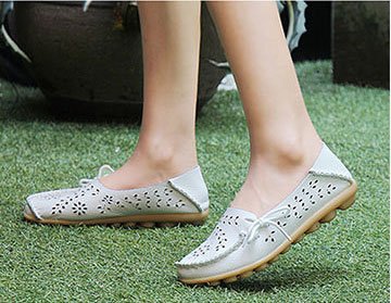 | Yixinan Woman hollow casual shoes Peas driving shoes comfortable flat shoes leather lace-up shoes |