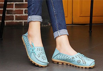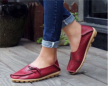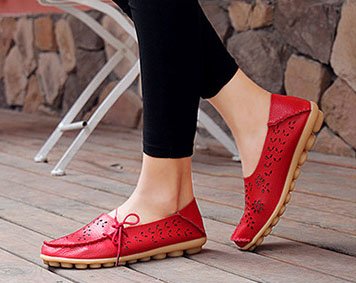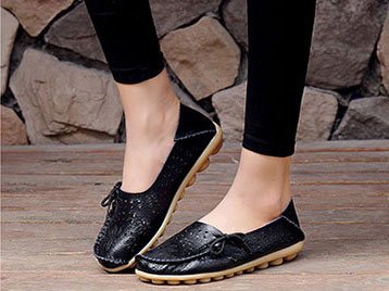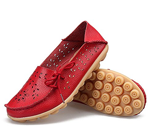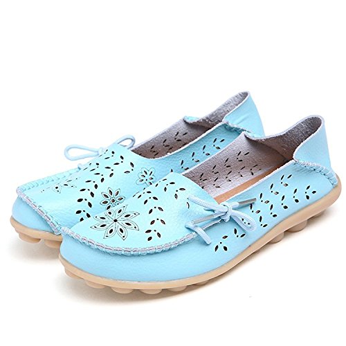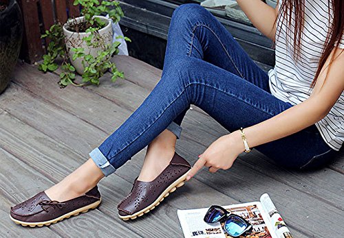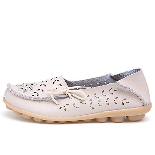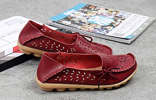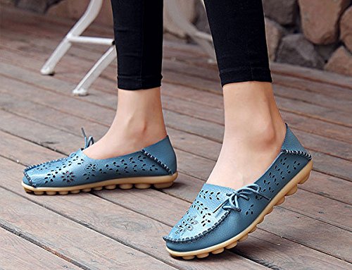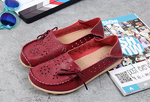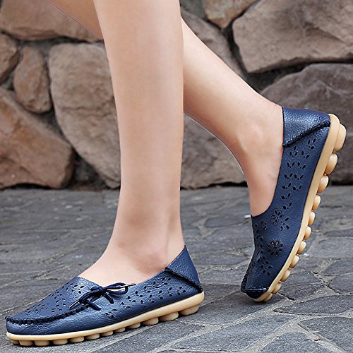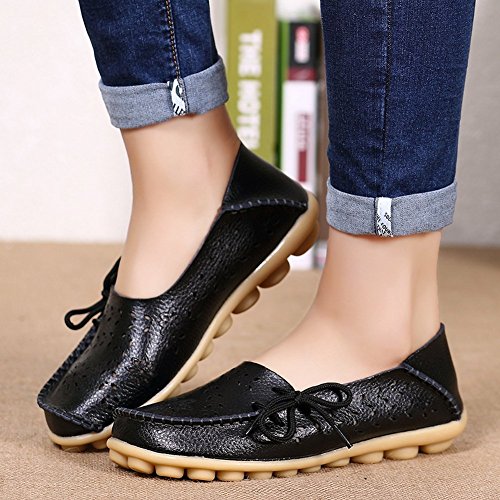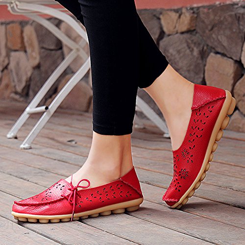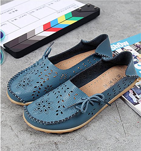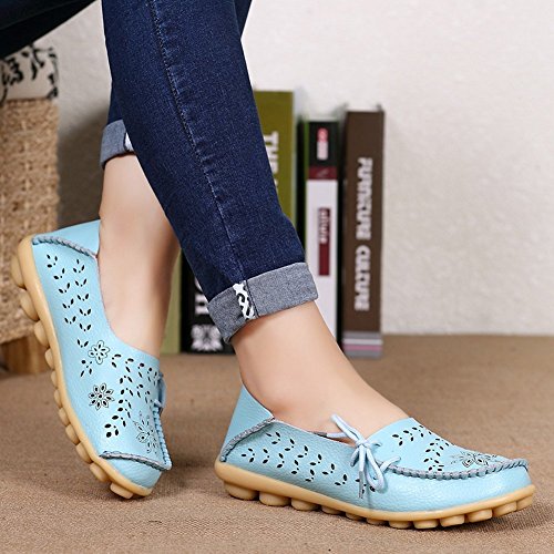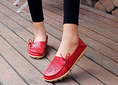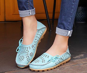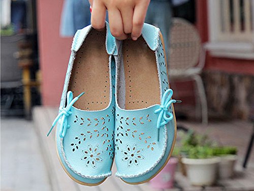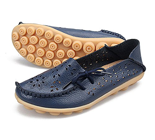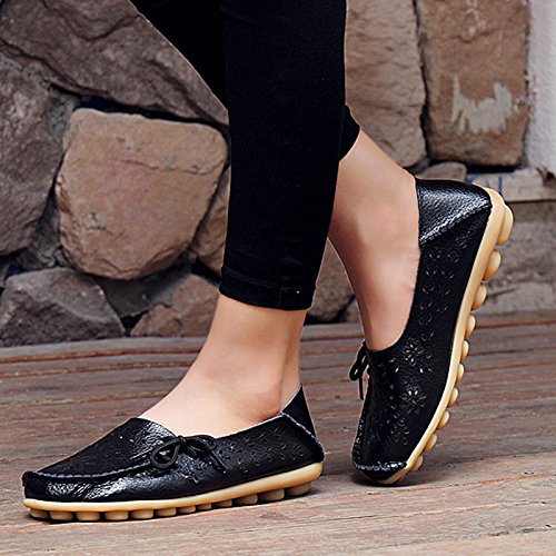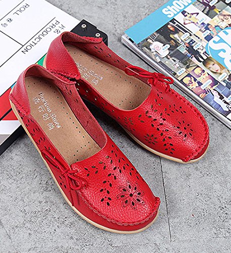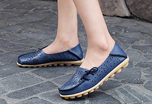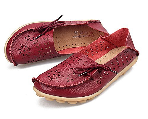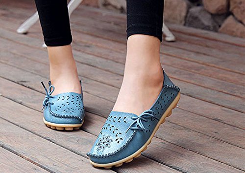 | Yixinan Woman hollow casual shoes Peas driving shoes comfortable flat shoes leather lace-up shoes |