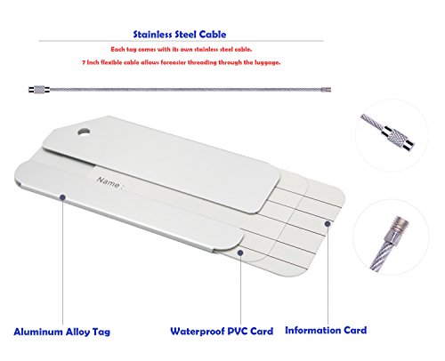 Using a luggage tag to help identify your luggage does not mean it has to be boring. it can be easy to spot, and helps put a little personality to your own travel experience. The small size, as well as our durable material and metal loop, dramatically decreases the chances of your luggage tag from following off during your travels. Privacy Cover-Simply write your information directly onto the card using a ball point pen and your personal information is perfectly hidden except for your name which is shown through the window. It will make obtaining the owner¡?s information very so most of your personal information is kept much safer throughout the trip. Strong-Our luggage tags are made from Aluminum for added durability. We have provided the best balance between durability, functionality, and personalization. The luggage tag is sturdy and durable, it is not easy to break. 0 |