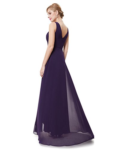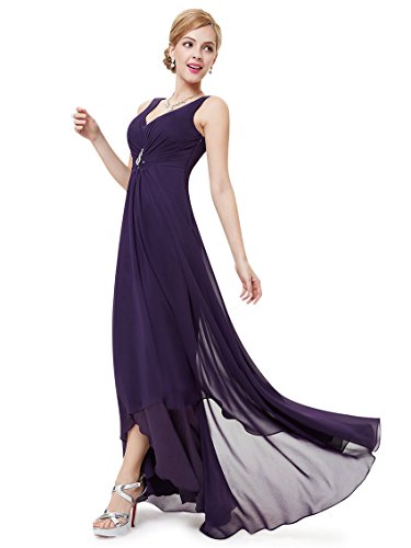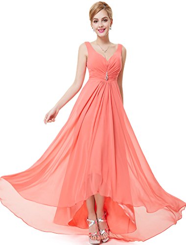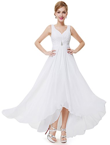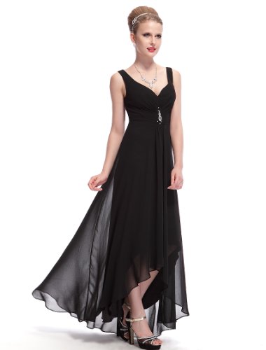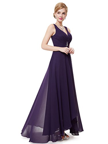 Double v-neck evening dress.Padded enough for "no bra" option.Ruched bust design decorated with nonremovable rhinestones creates a universally flattering silhouette.Unique high low design enhances the elegance of this dress.Concealed side zipper.Lining, no stretch.The center back length of size 6-18 are 133cm,133cm,133cm,133cm,131cm,131cm,131cm