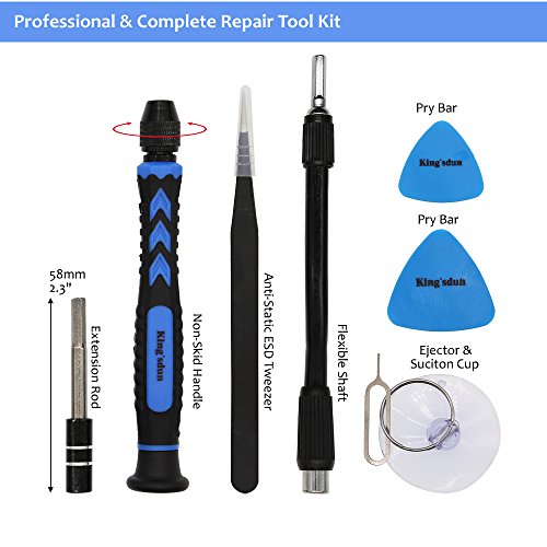 - Iphone6/6S/7/7Plus,macbook complete repair tool kit for screen removal or battery change, include Two opening plastic pry bars & anti-static ESD tweers, SIM Ejector & suction cup,one-station repair,widely used for many electronic devices like smart phone,electronic fans,camera,computer,laptop, etc.