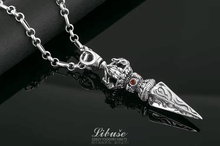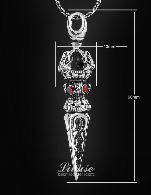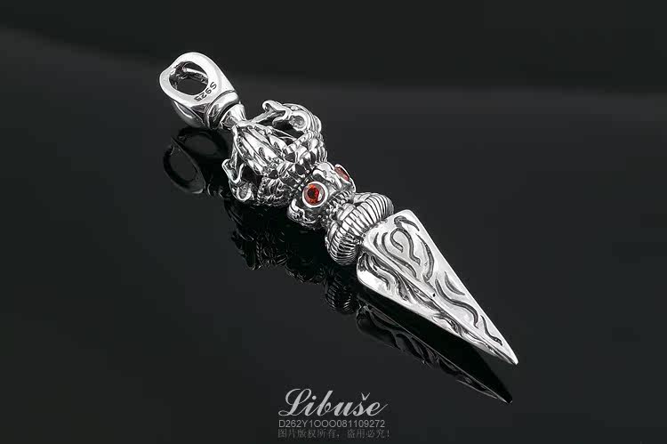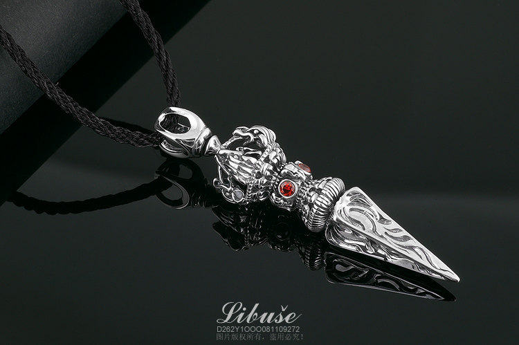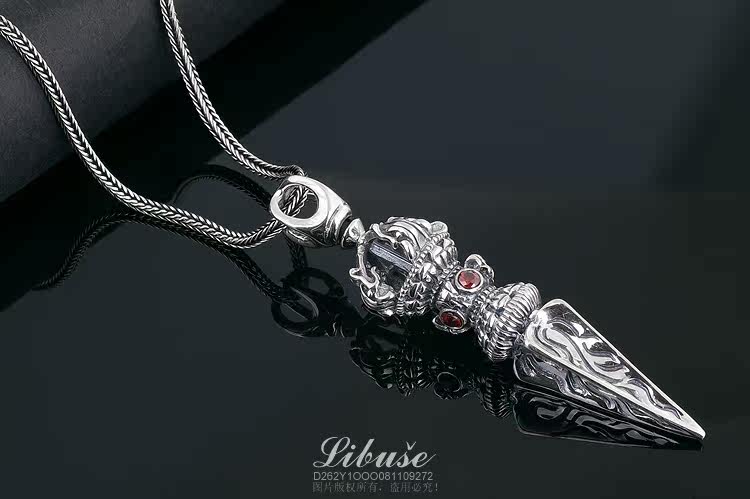 丽伯萨buddhismus系列经典款式,纯银,重约15克,手工制作 ,镶四颗巴西产天然石榴石。 金刚橛纯银吊坠,象征坚毅、果敢之精神。佩戴金刚橛,有护身平安、不受魔杖危害的寓意,可做护身符。
