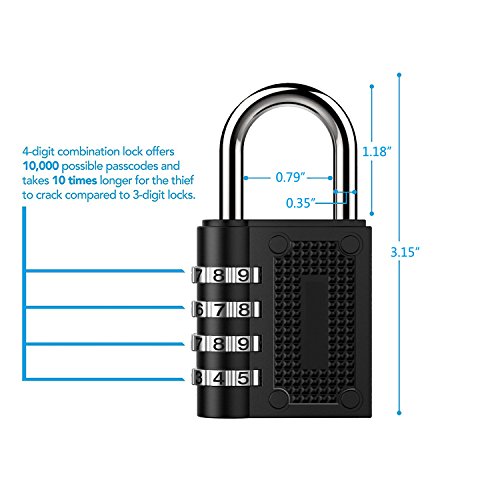 - 🔒Secure Bags & Lockers Perfectly: Combination lock has 4-digit, offers 10000 combinations, which is more difficult to crack than the 3 digit locks, which cannot be removed by human force.