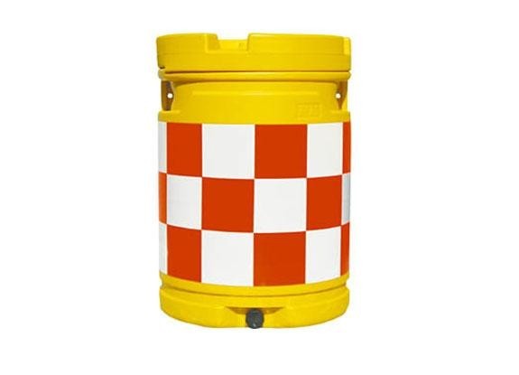 工事現場等の安全を守る緩衝用ドラムです。上部全体がフタになっているため、水袋の出し入れが簡単です。中に水が溜まっていても下部の水抜き栓から排水が可能です。