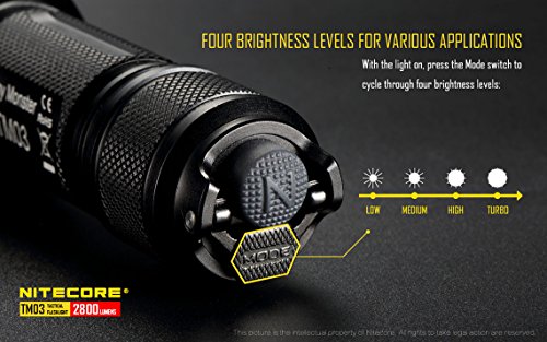 - Nitecore TM03 is officially the brightest flashlight of its size, producing up to 2800 lumens of brightness with its instant turbo mode and instant strobe mode.