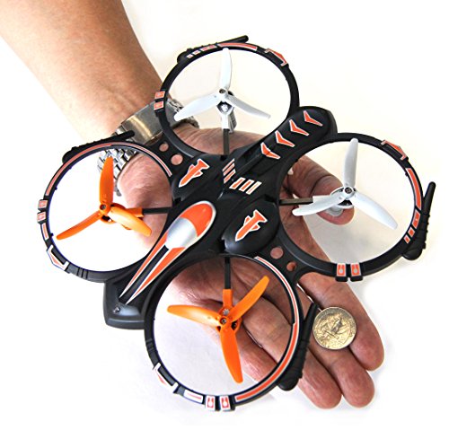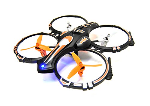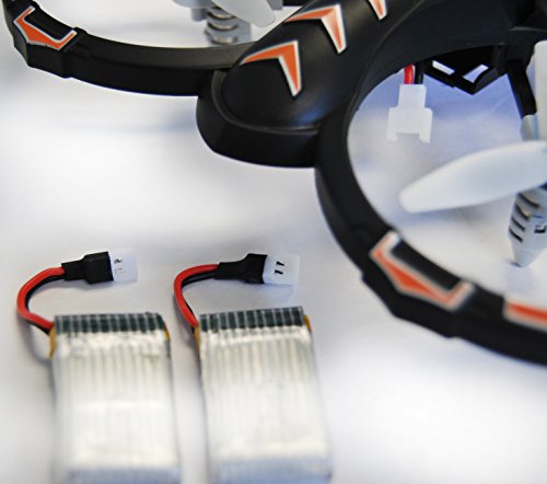 -. Feature : Package includes: Quadcopter, remote controller, 2 Li-Polymer rechargeable drone batteries, 2 USB charger, replacement blades and practice landing pad. / Quadcopter is durable & crash proof w/ screw reinforced 3 bladed propellers for better thrust and energy efficiency compared to 2 bladed propellers / Flight time is ~6 minutes with flight distance of 50 feet. Charge time is 60 minutes per battery. Double flight time with 2 fully charged batteries give you a total flight time of ~12 minutes. Drone batteries are Li-polymer 3.7V 300mAh. / Designed for all users and easy for beginners: 6-axis design makes the gyroscope adjustable & stable. Controller uses 2.4GHz frequency for quicker and improved control while consuming less battery. 360 degree flips, adjustable speed mode function & LED Lights. / Recommend for beginner/intermediate and indoor flying and for ages 10 & up. Does NOT require FAA registration for drone. 6 AA batteries required for remote controller is not included.