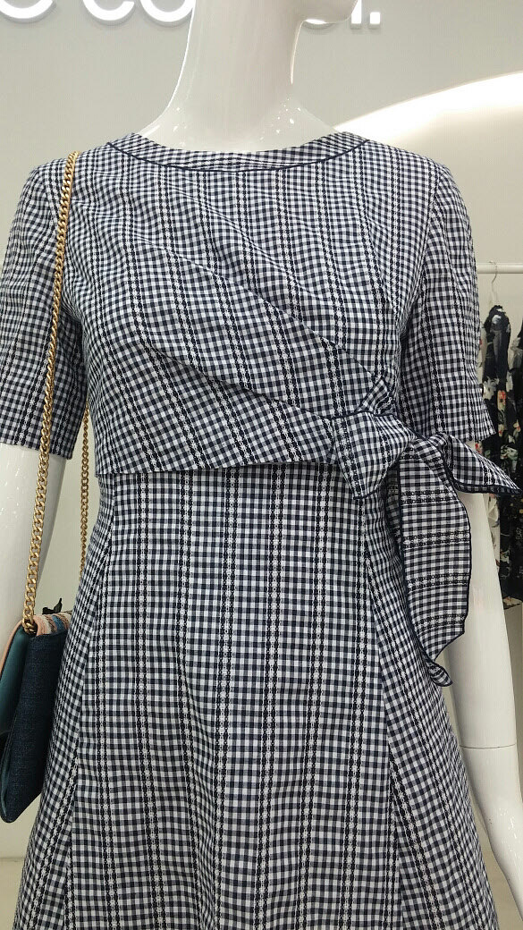 허리라인의 리본포인트가 바디라인을 아주 슬림하게 보이도록 해주는 원피스입니다. 소매부분의 진주 포인트가 귀엽고 여성스러운 느낌을 자아내고 적당한 길이감으로 부담없이 입으실 수 있습니다. 단순한 체크무늬가 아니라 자수와 함께 곁들인 체크무늬라 고급스럽스니다~