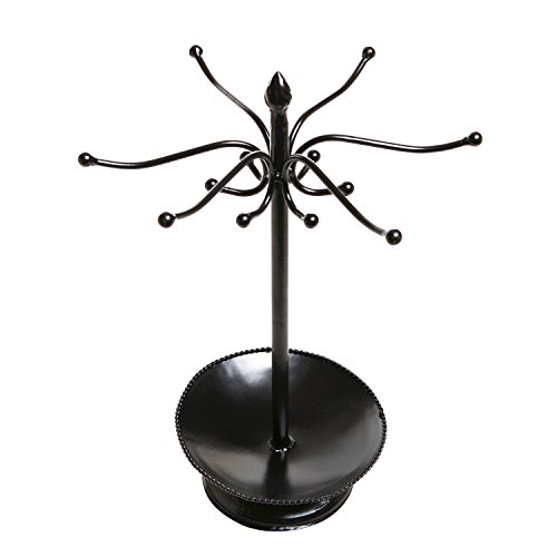 - Add Victorian style elegance to your bedroom or bathroom with this beautifully designed, black metal jewelry tower.