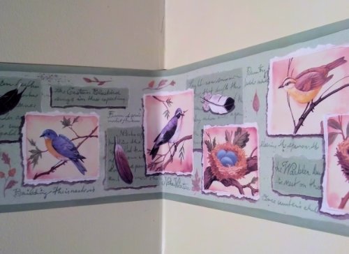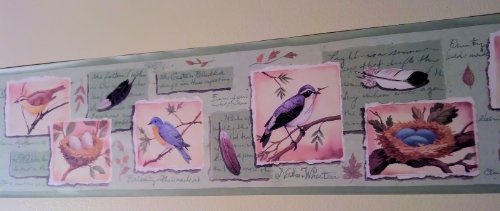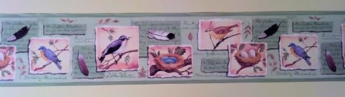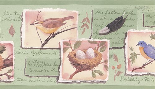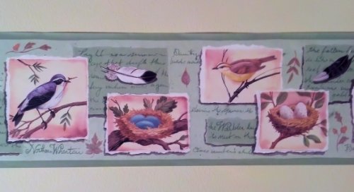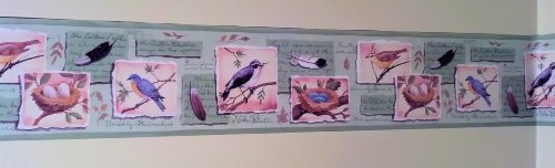 -. Feature : Prepasted Wallpaper Border - 15 Feet Long Spools / 7 Inches Wide / Birds, Blue Birds, Warblers, Nest Eggs Gardening / Country Wallpaper Border